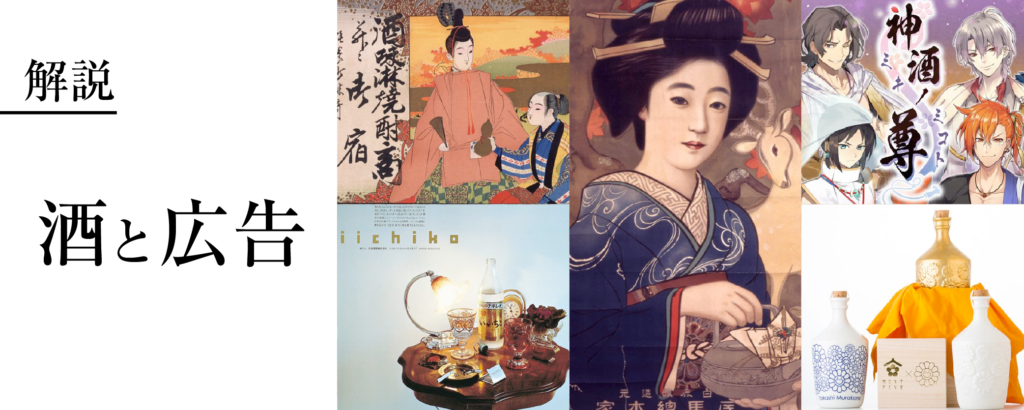 お酒の広告といえば、まず思い浮かぶのは「酒林」でしょうか。「酒林」は杉の葉を刈り込んだ球体で「杉玉」とも呼ばれます。造り酒屋で新酒が出来たことを知らせる、シンボル的な看板です。これは室町時代から伝わる看板ですが、今日なお町の酒屋さんや居酒屋などで見かけます。看板や暖簾はもっとも根元的な広告なのです。