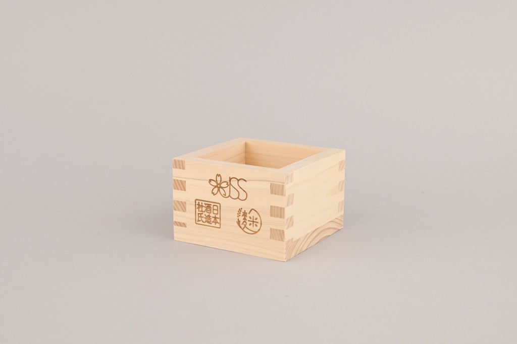 Originally, a masu was a wooden measuring box used to measure rice or sake. It was also used as a vessel for offerings to deities and thus came to be regarded as an auspicious object. Today, sake is sometimes served directly in a masu or in a glass placed inside it.