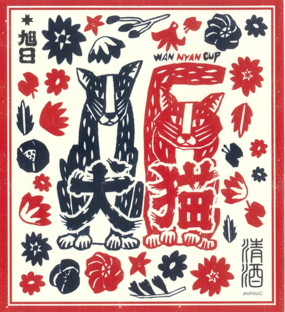 A cheerful label featuring dog and cat designs. Cup sake with matching dog and cat motifs—each filled with junmai sake made from different rice varieties—is also available. A portion of the proceeds is donated to Animal Rescue Dream Road, a nonprofit organization in Izumo City that works on animal rescue, protection, and public awareness.