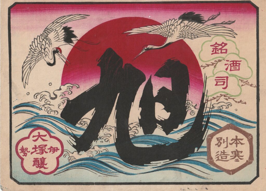 Meiji-period woodblock-printed barrel labe