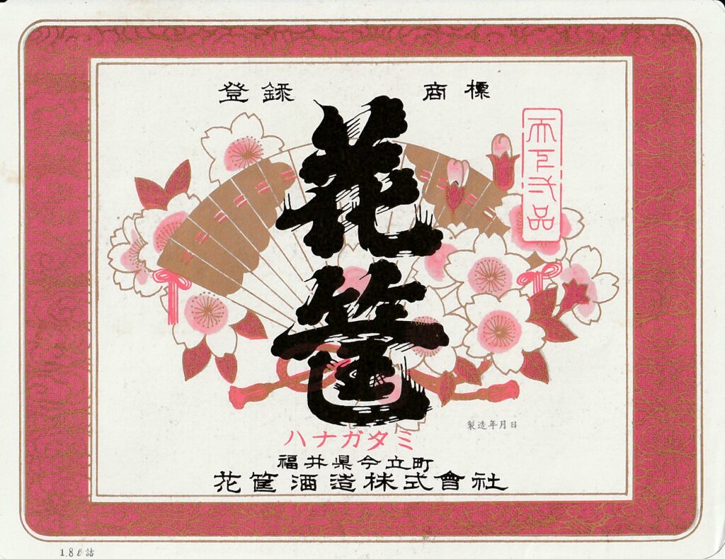Brand: HanagatamiBrewer: Hanagatami ShuzoLocation: FukuiEra: ShowaContainer: Issho-bin(1.8L bottle)Printing Method: Mechanical printingSize: 15 x 12 cm