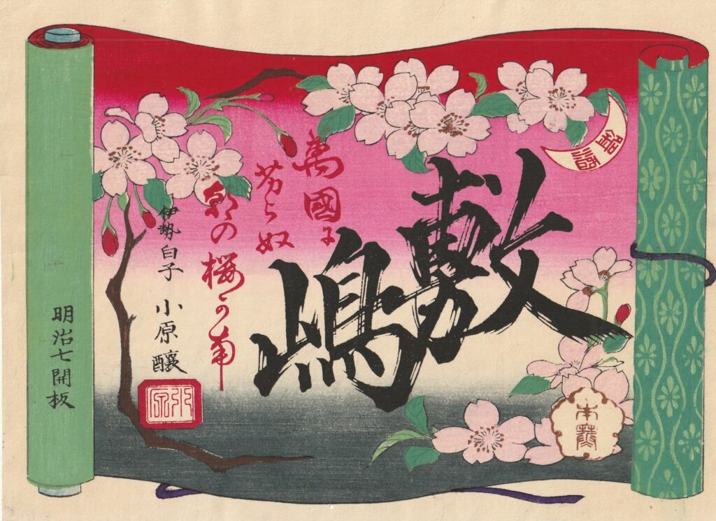 Brand: ShikishimaBrewer: ObaraLocation: MieEra: MeijiContainer: Wooden barrelPrinting Method: Woodblock printSize: 24 × 18 cm