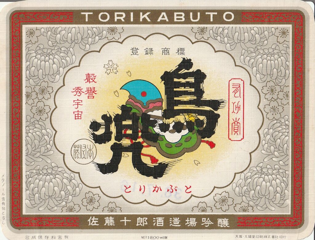 Brand: TorikabutoBrewer: Sato Juro ShuzojoLocation: KyotoEra: ShowaContainer: Issho-bin(1.8L bottle)Printing Method: Mechanical printingSize: 15 x 12 cm