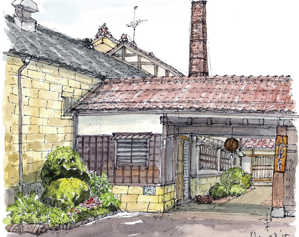 Artist’s Comment: An atmospheric nagaya-mon gate, a brick chimney, and carefully tended shrubs.