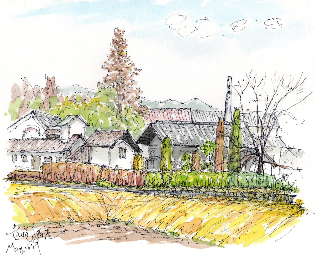Artist’s Comment: The charm of a kura in the satoyama landscape. I couldn’t quite fit everything in.