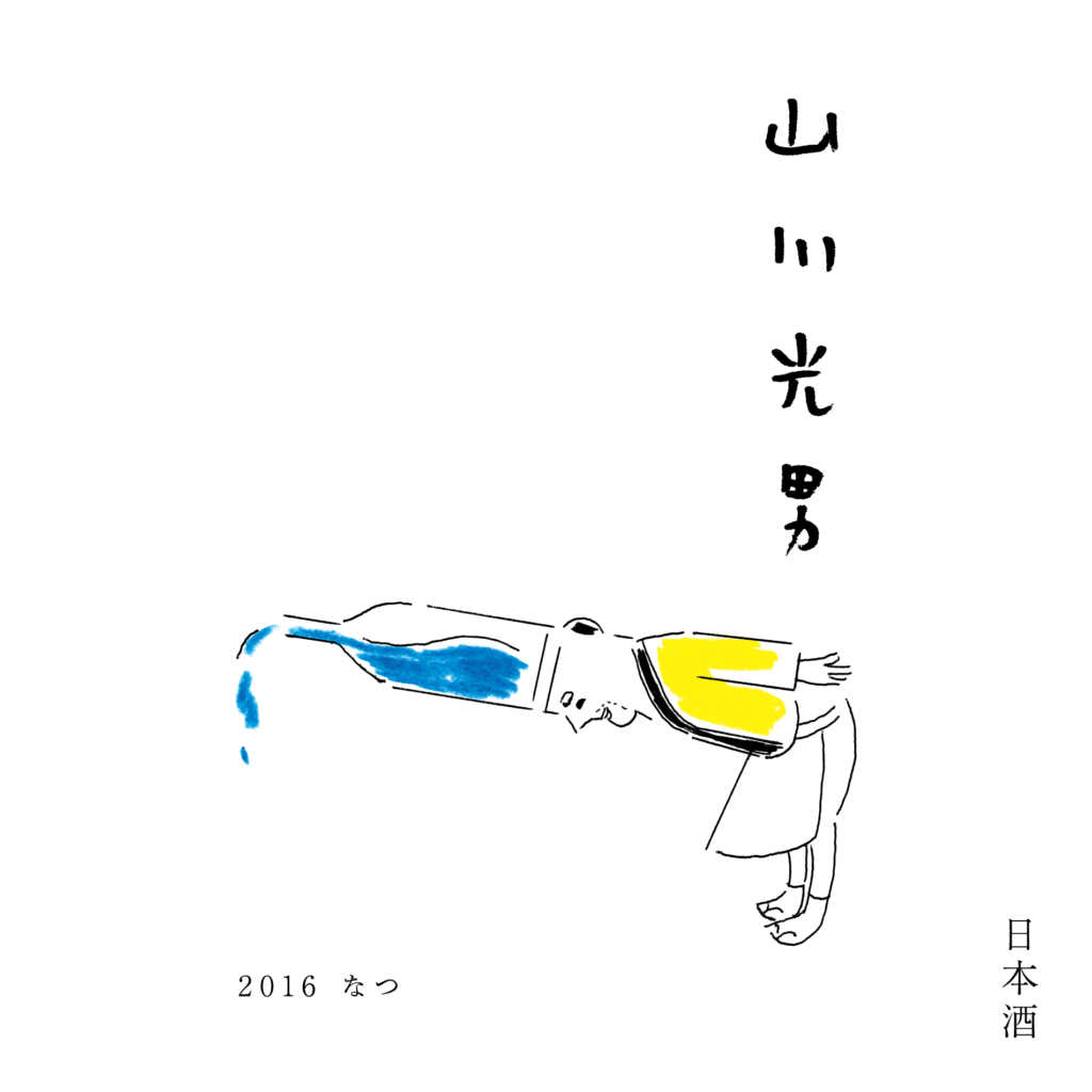 山形県内にある四つの酒蔵の代表銘柄(山形正宗、楯野川、東光、男山)からそれぞれ1文字を取って結成されたユニット「山川光男」。そのキャラクターを主役にしたラベルです。