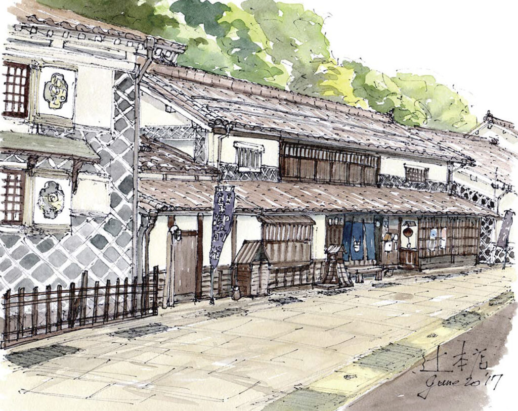 画家コメント:古い街に似合った趣のある蔵。いくつもの蔵が並ぶ。