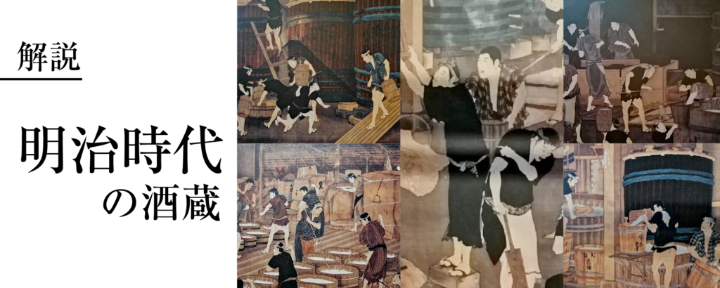 ここで紹介している一連の絵画は、成田山へ奉納するために、浮世絵師の豊原国周が明治14年に描いたものである。国周は清酒「万両」の醸造元である鈴木家(現在の埼玉県岩槻市の鈴木酒造)に滞在し、酒造りの様子を間近に見ながら描いたという。明治初期の酒造りが絹地に詳細に生き生きと描かれた肉筆画で、歴史的資料としても大変貴重なものである。現在は機械化されている部分も多いが、すべてが手作業で行われていた時代の酒造りの知恵や大変さが伝わってくる。